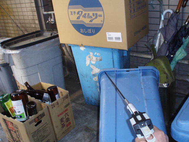 ゴミ箱の裏にもベイト剤を塗布します。 |